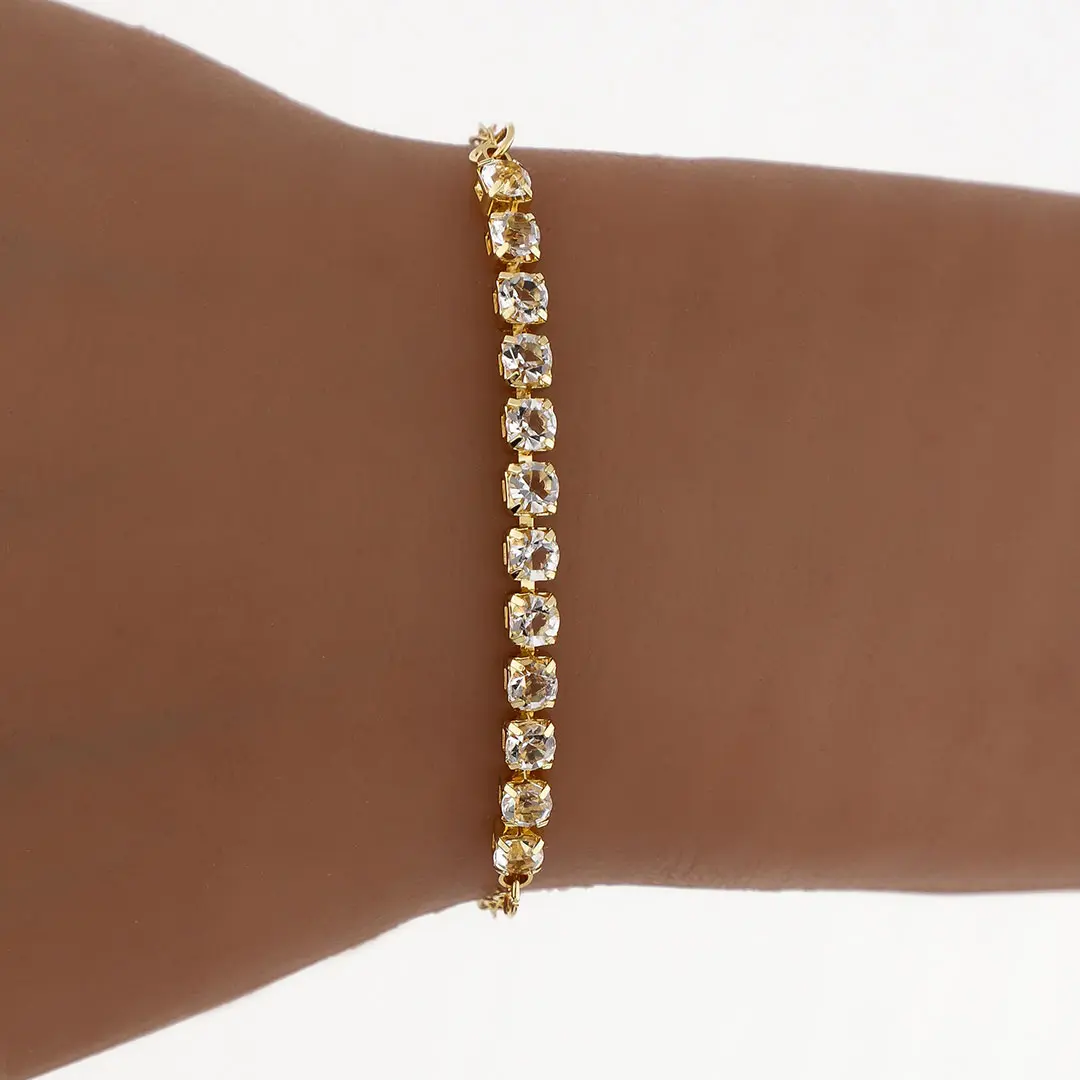 PULSERA STRASS ACERO DORADO